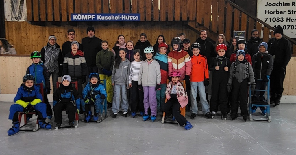 Nachdem sich alle Schlittschuhe ausgeliehen und festgeschnürt hatten, wagte sich alle aufs Eis. Einige der jüngeren Spieler*innen standen zum ersten Mal auf Kufen, bekamen aber sofort Unterstützung von den erfahreneren Jugendlichen und dem Betreuerteam. Schnell entstand eine fröhliche Mischung aus gemeinsamen Runden und kleinen Wettrennen, bei denen sich die Kinder gegenseitig anfeuerten. Zwischendurch wärmten sich alle mit einem gemeinsamen Mittagessen auf, das vom Verein organisiert wurde.